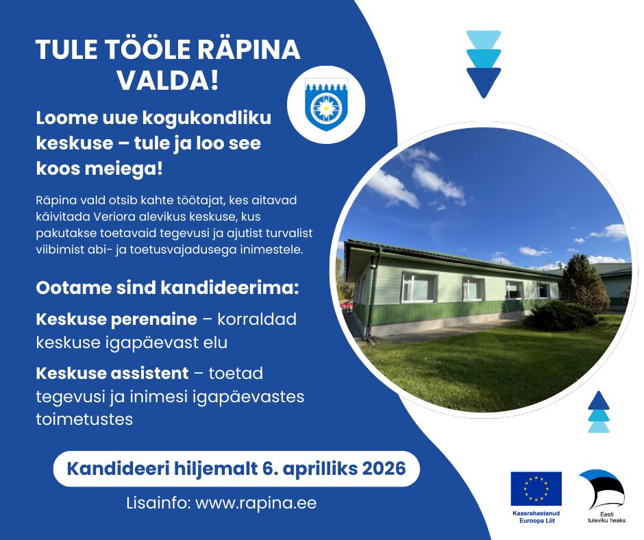 Räpina Vallavalitsus kuulutab välja konkursi kahele ametikohale Veriora teenuskeskuses