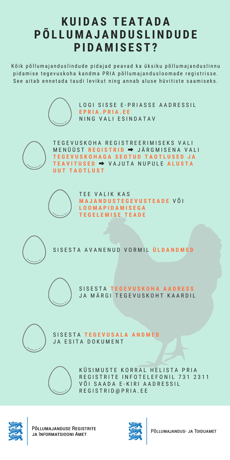 - kui Sul on vähemalt üks põllumajanduslind (nt kana, part, hani), pead registreerima enda linnupidamise koha PRIA põllumajandusloomade registris;